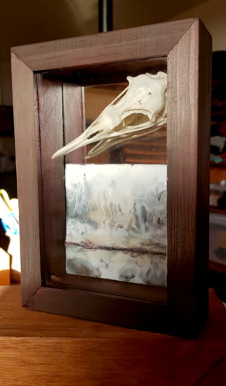 Sooty Shearwater encaustic shadowbox construction